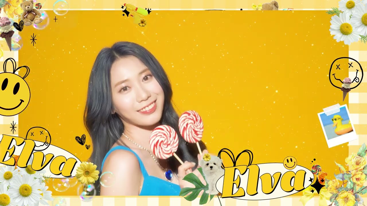 ELVA chamou a atenção expressando sua inocência segurando pirulitos coloridos, posando contra um fundo amarelo intenso e encantando os fãs com seu visual refrescante, de vestido azul e cabelos longos soltos.